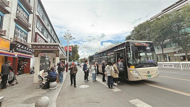 圖為越來越多的市民選擇公交出行。記者 格桑倫珠 攝