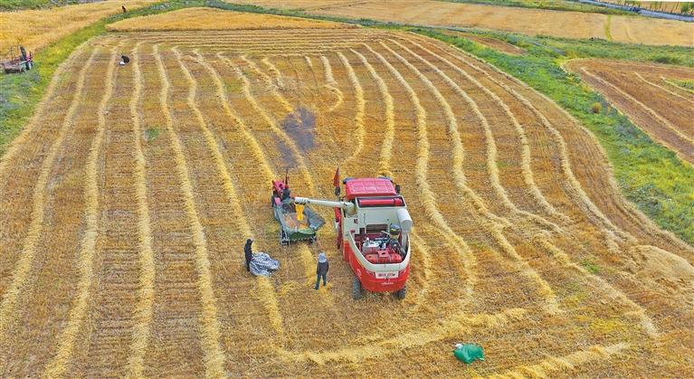 秋收時節(jié),廣袤田野鋪展金色畫卷。拉薩市墨竹工卡縣田間地頭一片繁忙景象,大型收割機(jī)轟鳴穿梭,村民忙碌其間,豐收喜悅洋溢臉龐。