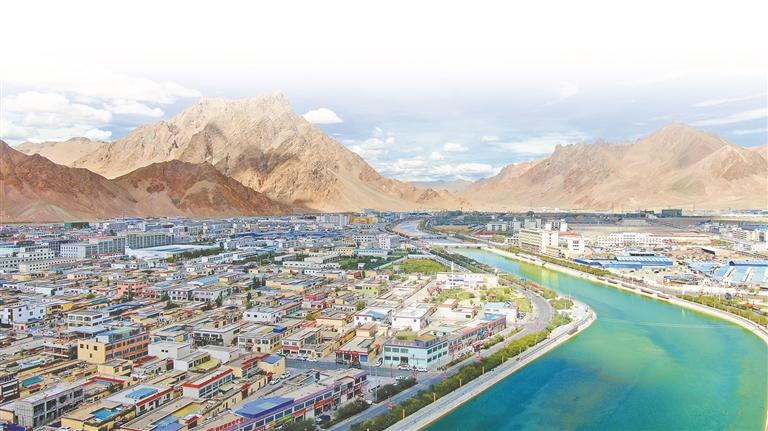 圖為綠意環(huán)繞的獅泉河鎮(zhèn)。 記者 洛桑旦增 達(dá)珍 永青 攝