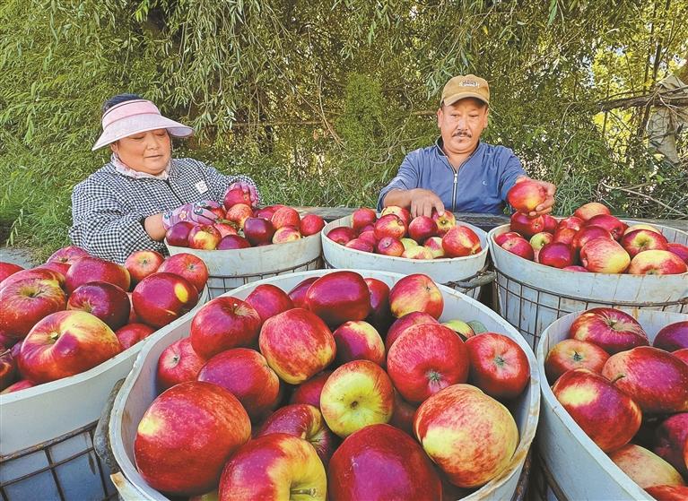 走進(jìn)位于林芝市巴宜區(qū)與米林市交界處的林芝農(nóng)墾嘎瑪農(nóng)業(yè)有限公司蘋果種植基地,連片的果樹(shù)枝繁葉茂,紅彤彤的蘋果綴滿枝頭。得益于高原充足的日照、較大的晝夜溫差,以及清冽的雪山融水灌溉,這里的蘋果色澤鮮艷,口感脆甜多汁,深受消費(fèi)者青睞?!?/p>