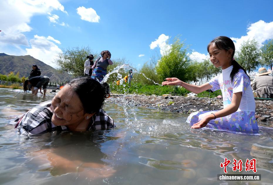 9月13日,西藏拉薩民眾迎來(lái)沐浴節(jié)。每年藏歷7月,西藏民眾迎來(lái)為期7日的傳統(tǒng)民俗節(jié)日沐浴節(jié),藏語(yǔ)稱為“嘎瑪日吉”?!恫蒯t(yī)養(yǎng)生》中記載,藥王星當(dāng)空,江河湖海等一切水源皆具藥性,七日內(nèi)沐浴可清凈業(yè)障。圖為民眾在拉薩河邊戲水。中新社記者 李林 攝