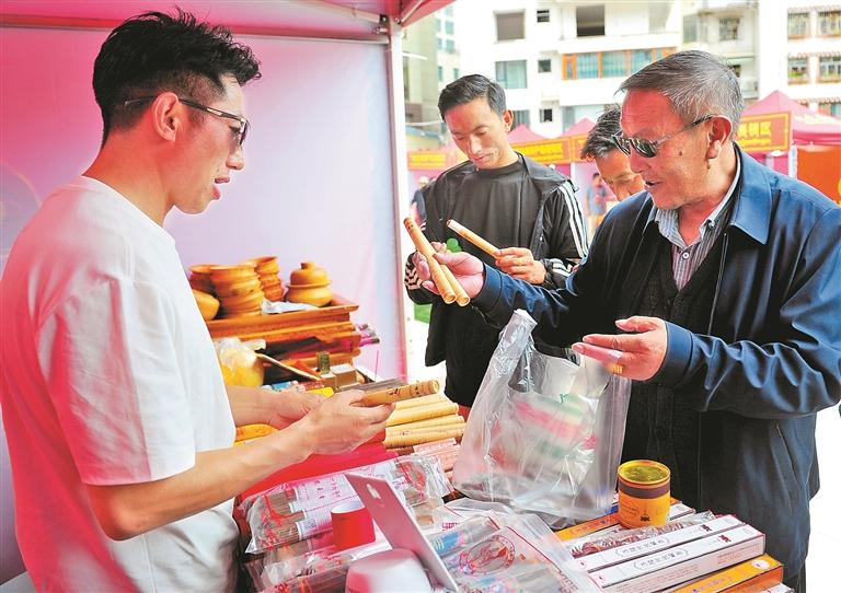 特色產(chǎn)品展銷柜臺(tái),市民正在選購(gòu)洛隆藏香。記者 平措朗加 溫凱 攝