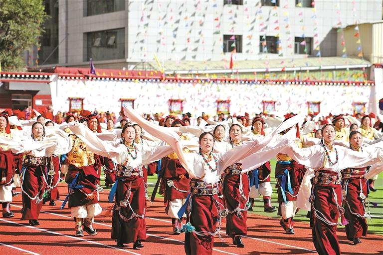 開幕式上表演的類烏齊嶺卓舞。記者 平措朗加 溫凱 攝