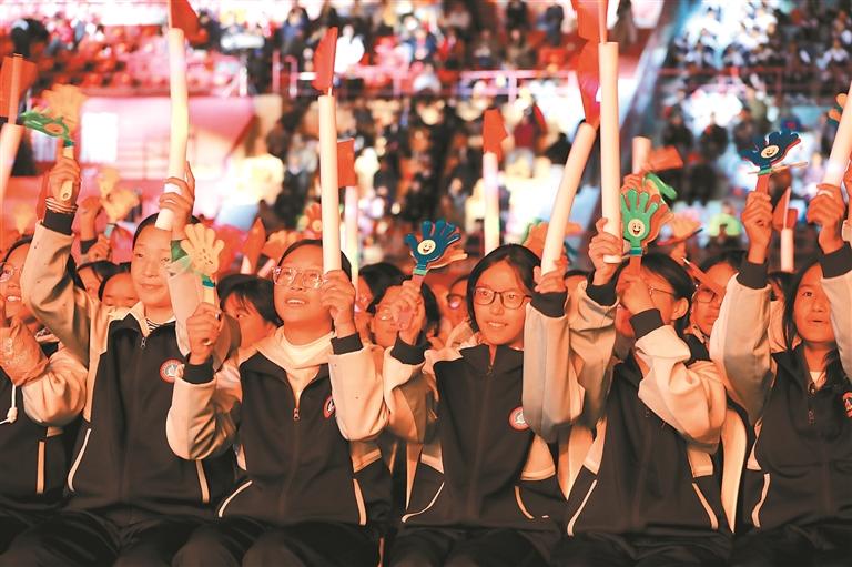 閉幕式公益演出現(xiàn)場(chǎng)熱情洋溢的學(xué)生們。記者 平措朗加 溫凱 攝