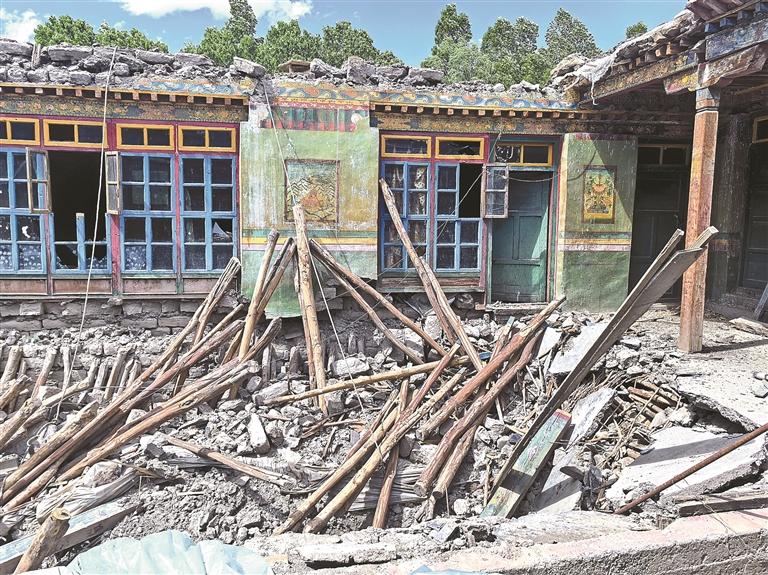 圖為索朗旺堆家已經坍塌的老房子。 (圖片由受訪者提供)