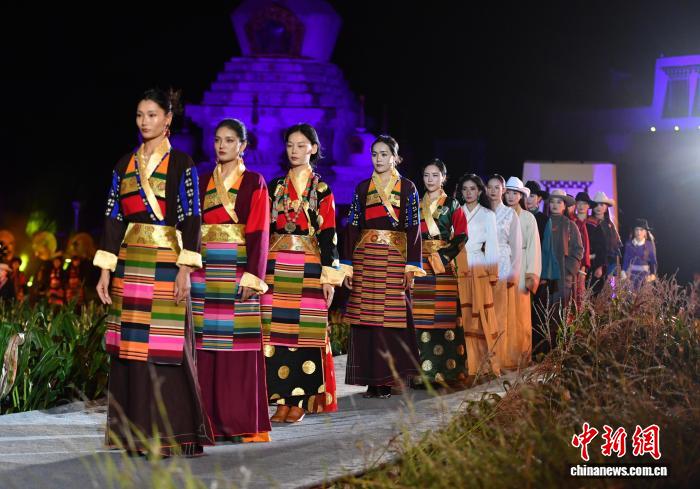 20日晚,一場(chǎng)田園中的走秀讓大眾再次感受到鄉(xiāng)城女性最具代表性的民族服飾“瘋裝”的文化內(nèi)涵和動(dòng)人魅力。伴隨著夜幕下的絢麗燈光,當(dāng)?shù)夭刈宕迕窈蛠碜郧嗪!⒏拭C、西藏等地的藏族模特身著盛裝,演繹一場(chǎng)融合傳統(tǒng)與現(xiàn)代的“民族時(shí)尚秀”。
