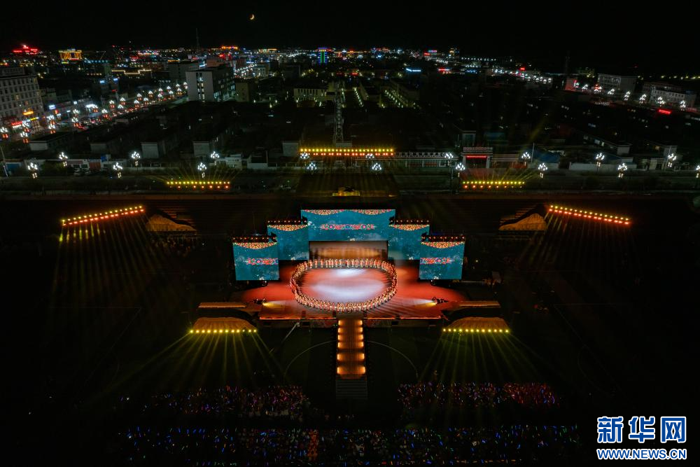 9月26日,第九屆象雄文化旅游節(jié)開幕式現(xiàn)場(無人機(jī)照片)。新華網(wǎng) 旦增努布 攝