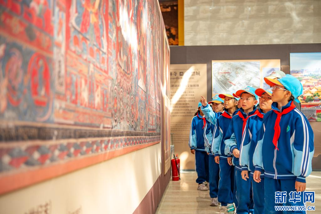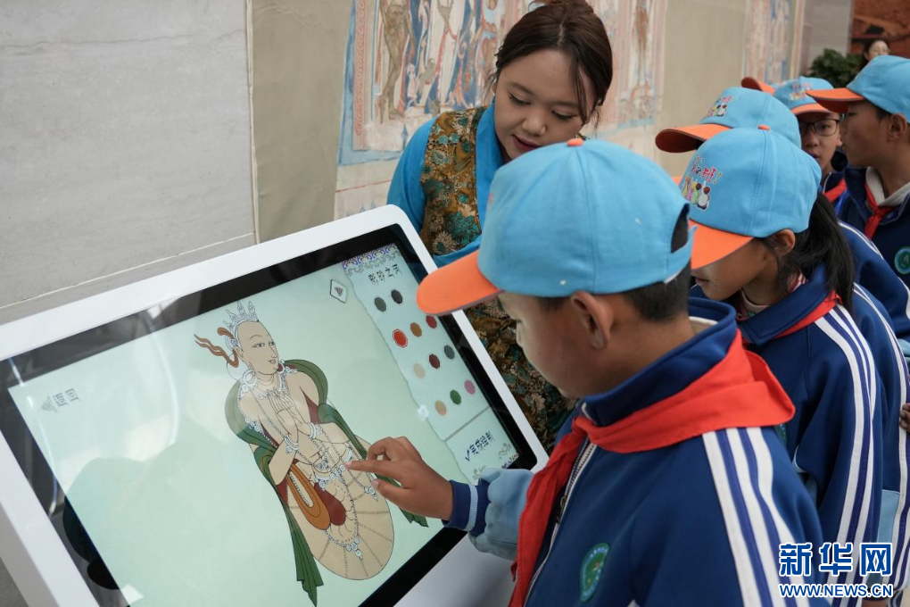 9月26日,學生在參觀“鐫刻高原 繪見古今”阿里巖畫與壁畫藝術特展。新華網(wǎng) 旦增努布攝