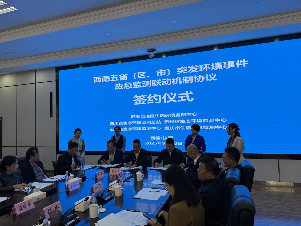 開幕式上,裁判員代表與參賽選手代表分別作了表態(tài)發(fā)言。隨后,會議組織簽訂了《西南五?。▍^(qū)、市)突發(fā)環(huán)境事件應(yīng)急監(jiān)測聯(lián)動機(jī)制協(xié)議》。西藏自治區(qū)生態(tài)環(huán)境監(jiān)測中心與重慶市、貴州省、四川省、云南省生態(tài)環(huán)境監(jiān)測機(jī)構(gòu)的代表共同簽署文件,旨在建立起應(yīng)對跨區(qū)域環(huán)境風(fēng)險的協(xié)同協(xié)作機(jī)制。