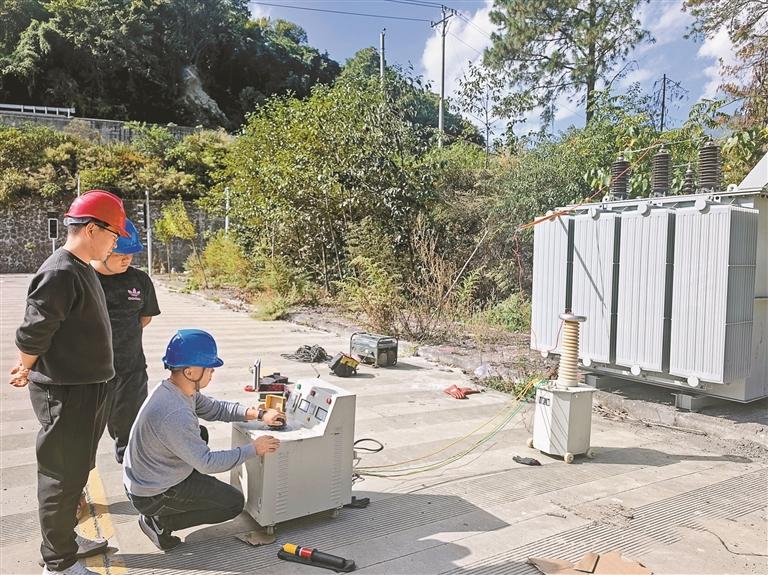 圖為國(guó)網(wǎng)察隅縣供電公司工作人員正在對(duì)變壓器進(jìn)行試驗(yàn)調(diào)試。記者 劉楓 攝