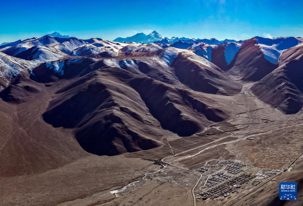 珠穆朗瑪峰腳下的西藏定日縣措果鄉(xiāng)野江村,靠近珠峰方向為建成并交付群眾使用的新房(11月12日攝,無人機照片)。新華社記者 姜帆 攝