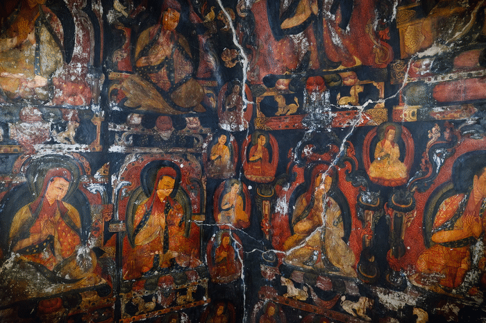 裸露的土林在正午強(qiáng)光下投出深深的陰影,顯得這片土地更加荒涼而遼闊。在海拔4000多米的山體里,被守住的從不是幾面壁畫(huà),而是文明留下的生命印記。