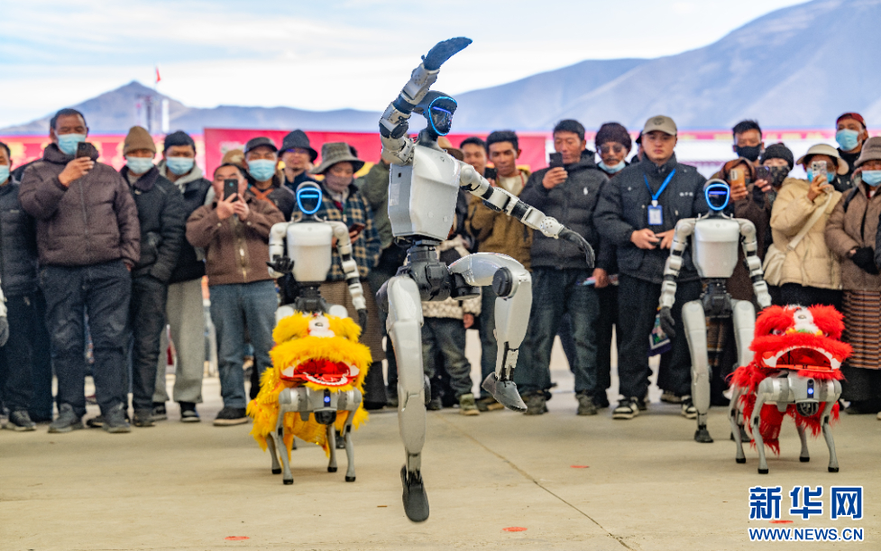 12月1日,西藏自治區(qū)山南市第45屆雅礱物資交流會(huì)開幕式現(xiàn)場機(jī)器人表演。新華網(wǎng) 旦增努布 攝