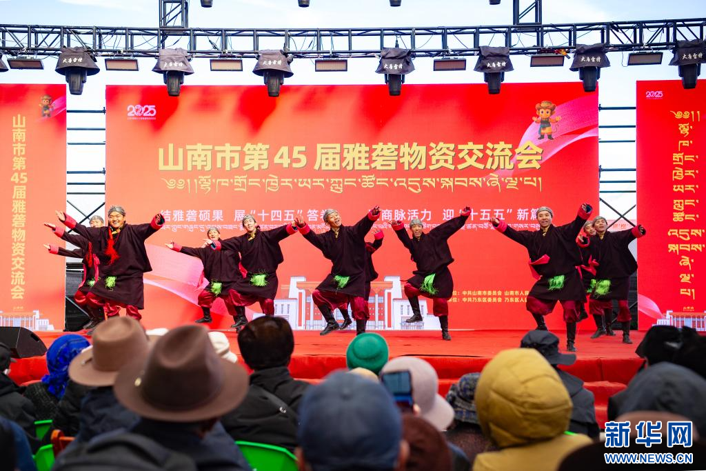 12月1日,西藏自治區(qū)山南市第45屆雅礱物資交流會開幕式現(xiàn)場文藝演出。新華網(wǎng) 旦增努布 攝