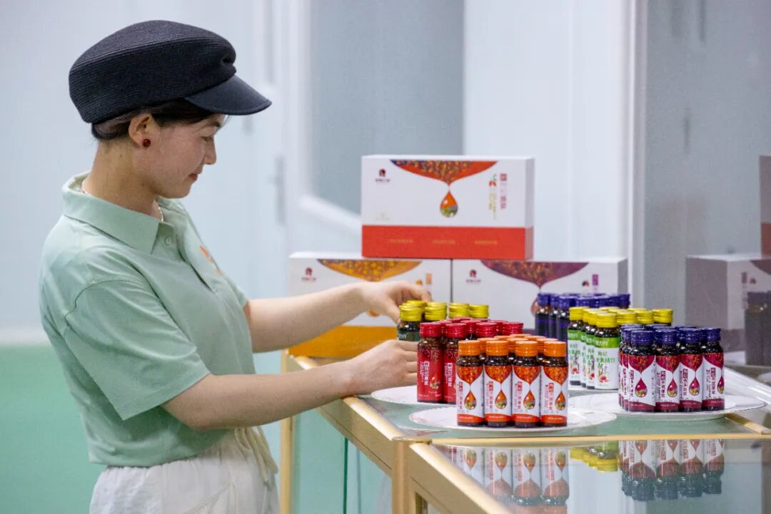▲6月20日,在寧夏同心縣河西鎮(zhèn)一家枸杞企業(yè),工作人員展示枸杞深加工產(chǎn)品。近年來,河西鎮(zhèn)依托當(dāng)?shù)厝龡l引黃干渠灌溉網(wǎng)絡(luò),流轉(zhuǎn)土地發(fā)展枸杞種植,通過龍頭企業(yè)帶動的方式發(fā)展枸杞深加工,產(chǎn)品深受國內(nèi)外消費(fèi)者喜愛。新華社記者 楊植森 攝