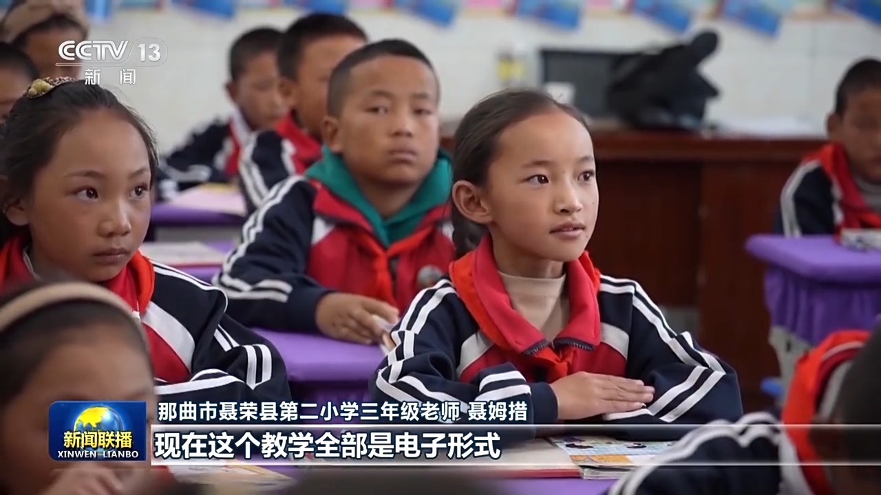 那曲市聶榮縣第二小學三年級老師 聶姆措:變化特別大,以前鄉(xiāng)鎮(zhèn)里面都是帳篷學校,黑板就是這么小的一個木板,冬天帳篷里面的話,手腳都是凍著的。現在這個教學全部是電子形式,條件特別好。