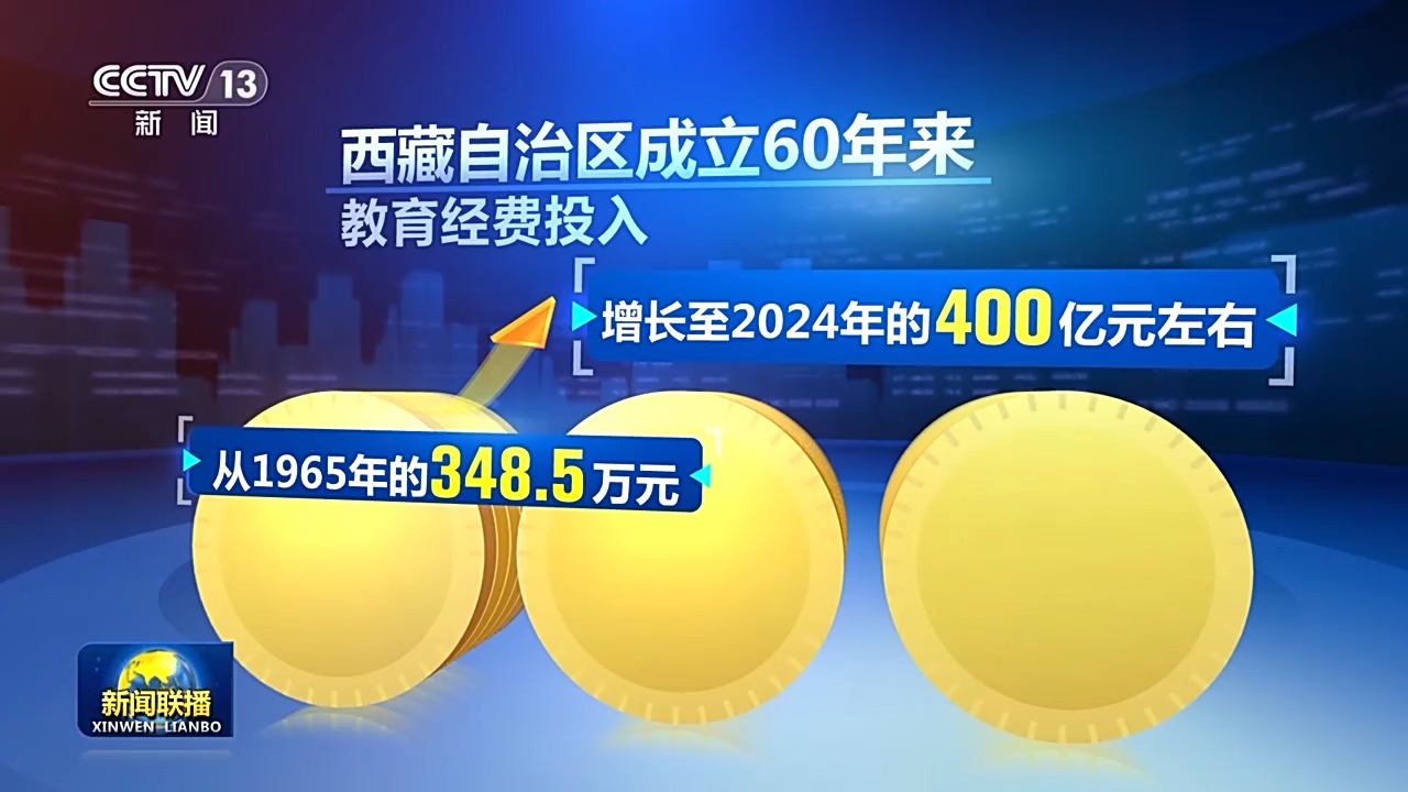 西藏自治區(qū)成立60年來,教育經費投入從1965年的348.5萬元增長至2024年的400億元左右。從2012年開始,西藏在全國率先建立從學前到高中的15年公費教育體系。如今的西藏,已建成涵蓋學前教育、基礎教育、職業(yè)教育、高等教育等完整的現代教育體系。從文盲率高達95%以上,到如今的新增勞動力平均受教育年限達13.1年,西藏教育實現了“歷史性跨越”。