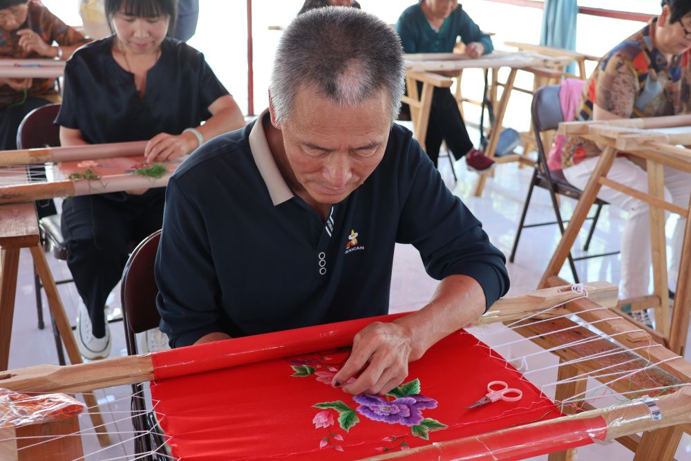 車(chē)間里,來(lái)自不同民族的繡工在交流和學(xué)習(xí)中,不僅精進(jìn)了繡法,也在傳承中華優(yōu)秀傳統(tǒng)文化中找到了更多共鳴,“同心同圓”等象征民族團(tuán)結(jié)的繡品表達(dá)著他們的心聲。
