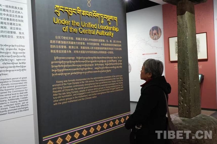 鄭堆在致辭中指出,西藏自古以來就是中國(guó)不可分割的一部分,一系列遺址、文物、檔案、文獻(xiàn)串聯(lián)起的歷史證據(jù)鏈,確鑿印證西藏與祖國(guó)同源同流、血脈相連,充分證明了中華民族共同體的形成和發(fā)展是人心所向、大勢(shì)所趨、歷史必然。中國(guó)藏學(xué)研究中心作為中國(guó)藏學(xué)研究的國(guó)家隊(duì),自成立以來始終堅(jiān)持“為維護(hù)祖國(guó)統(tǒng)一,加強(qiáng)民族團(tuán)結(jié)服務(wù);為西藏和四省涉藏州縣發(fā)展穩(wěn)定服務(wù)”的宗旨,圍繞西藏的歷史法律地位、西藏地方與祖國(guó)關(guān)系史、歷代中央政府治藏政策等進(jìn)行了全面、深入的研究,為中華民族發(fā)展史研究夯實(shí)了堅(jiān)實(shí)的基礎(chǔ)。藏研中心集全國(guó)藏學(xué)研究之力,先后完成了《西藏通史》和《西藏文化史》等重大項(xiàng)目,分別以八卷的體量、上千萬字的篇幅系統(tǒng)論證了西藏自古以來是中國(guó)不可分割的一部分,西藏文化是中華文化不可分割的有機(jī)組成部分。同時(shí),扎實(shí)推動(dòng)了《西藏早期文明史研究》《元以來西藏地方與中央政府關(guān)系研究》等重點(diǎn)課題,整理出版了《元以來西藏地方與中央政府關(guān)系檔案史料匯編》《中國(guó)第二歷史檔案館所存西藏和藏事檔案匯編》《中華大典·藏文卷》等一系列檔案文獻(xiàn)和史籍著作,為系統(tǒng)梳理西藏與其他民族和地區(qū)交往交流交融的歷史,推進(jìn)中華民族發(fā)展史研究夯實(shí)了扎實(shí)的史料基礎(chǔ),也使今天的展覽擁有了雄厚的研究基礎(chǔ)。從自在到自覺,中華民族從千萬年的榮辱興衰中攜手走來;從“社稷如一”到“書寫美麗西藏新篇章”,西藏的命運(yùn)始終與中華民族大家庭緊密相連。歷史鑄就的共同體,充分彰顯了中華民族國(guó)土不可分、國(guó)家不可亂、民族不可散、文明不可斷的共同信念。新時(shí)代,雪域兒女堅(jiān)信,在中華民族強(qiáng)國(guó)建設(shè)的新征程上,中華民族共同體必然會(huì)在我們的共同奮斗中愈發(fā)牢固。