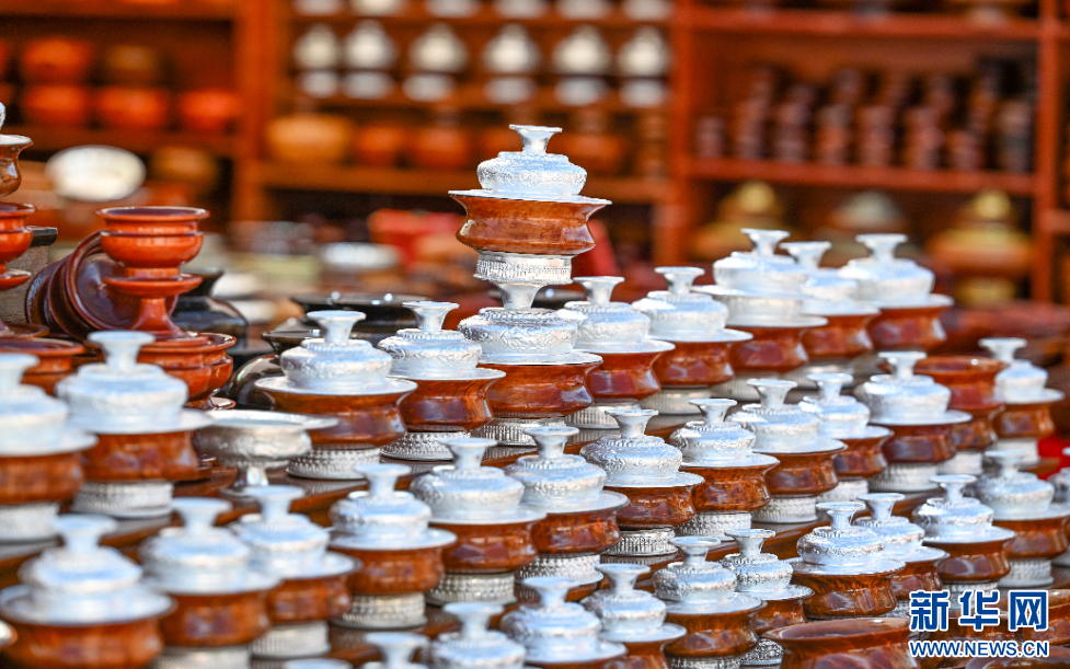 圖為西藏自治區(qū)山南市第45屆雅礱物資交流會(huì)上展示的木碗(12月1日攝)。新華網(wǎng) 旦增努布 攝