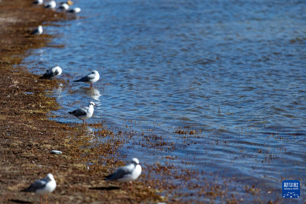 這是11月20日在羊卓雍錯(cuò)岸邊拍攝的紅嘴鷗。新華社記者 李鍵 攝