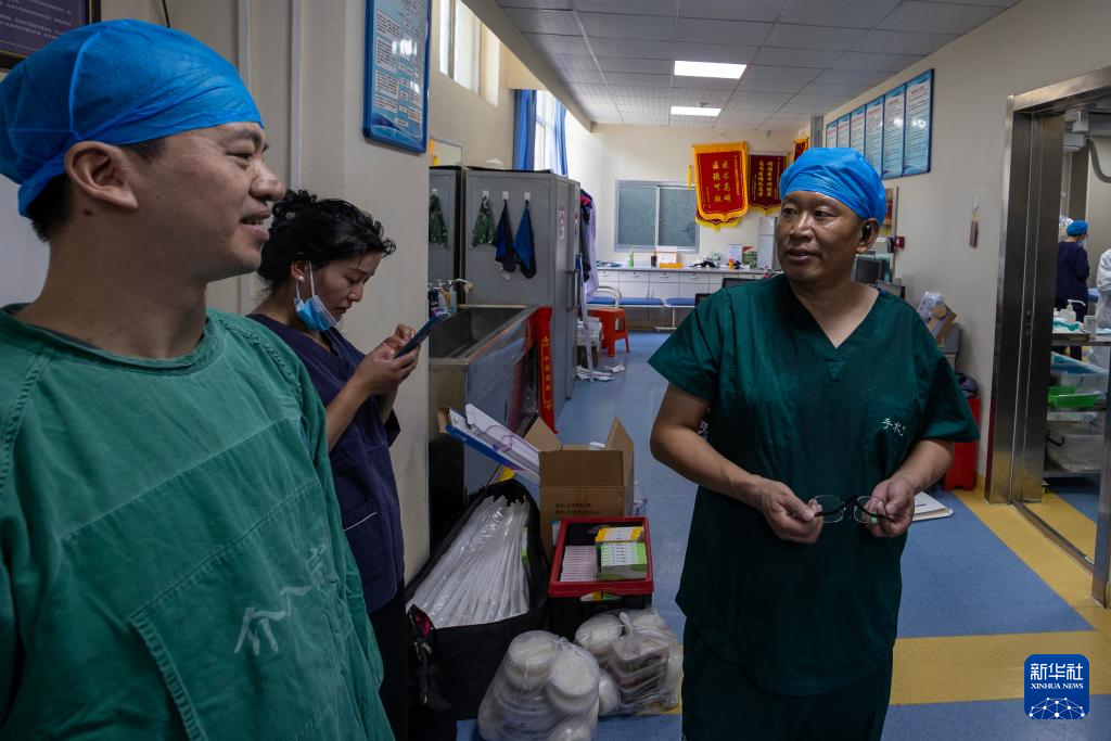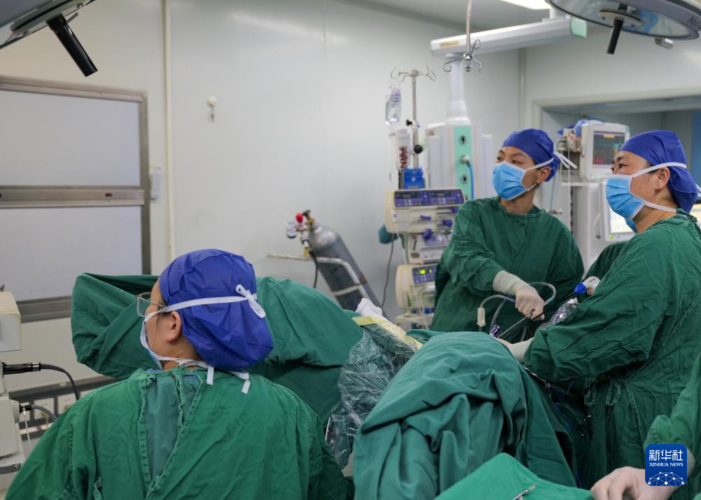 北京大學人民醫(yī)院第十批援藏婦科醫(yī)生張果(中)與西藏自治區(qū)人民醫(yī)院醫(yī)生李芳(左)一起為患者做手術(shù)(8月4日攝)。新華社發(fā)(柑丹鴦琦攝)